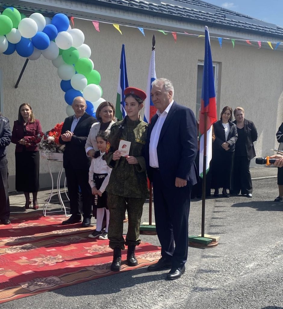Аслан Анатольевич вручил лучшим юнармейцам — учащимся выпускного класса удостоверения.